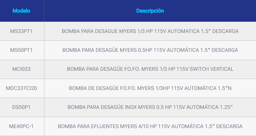 BOMBAS SUMERGIBLES PARA DESAGÜE MYERS